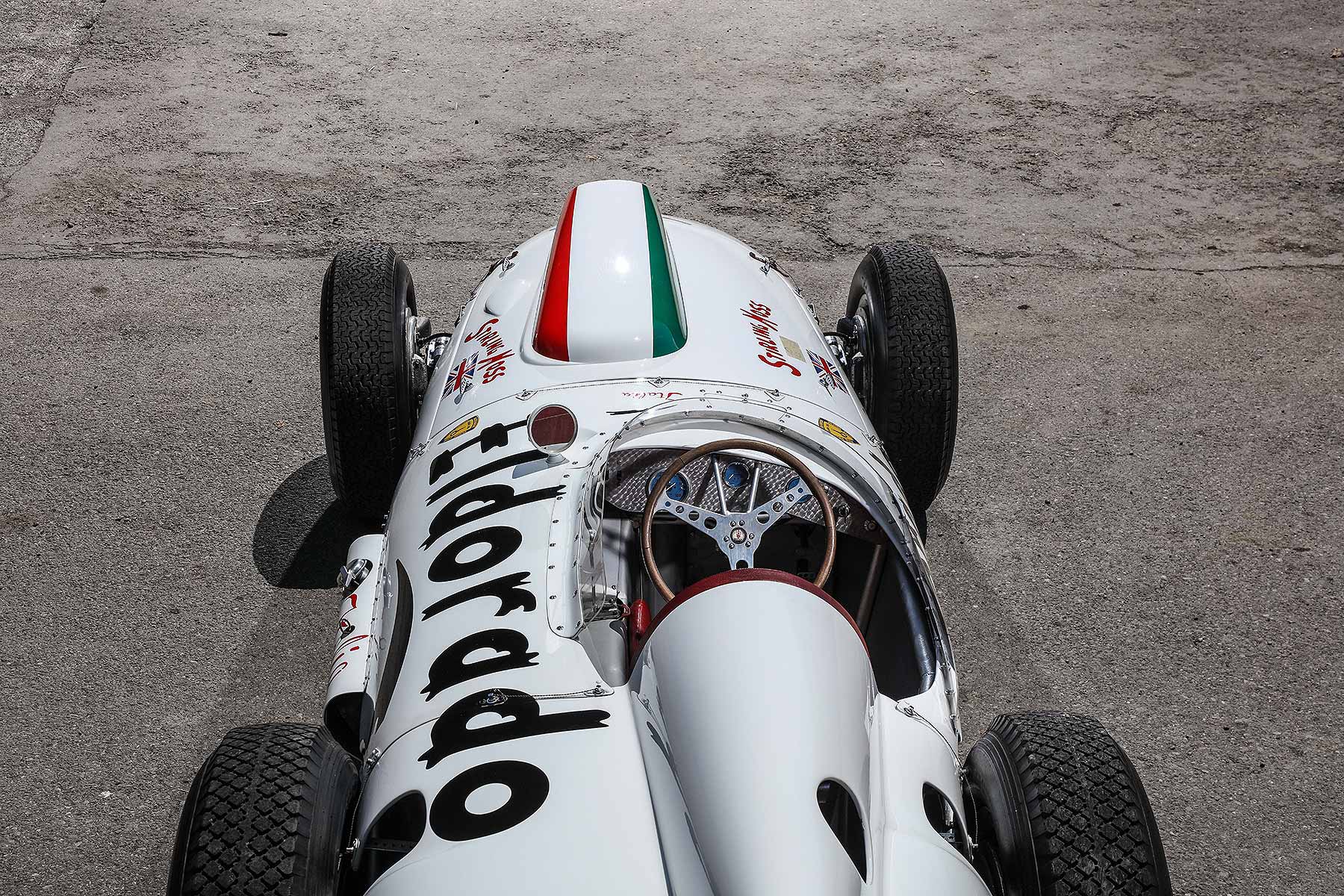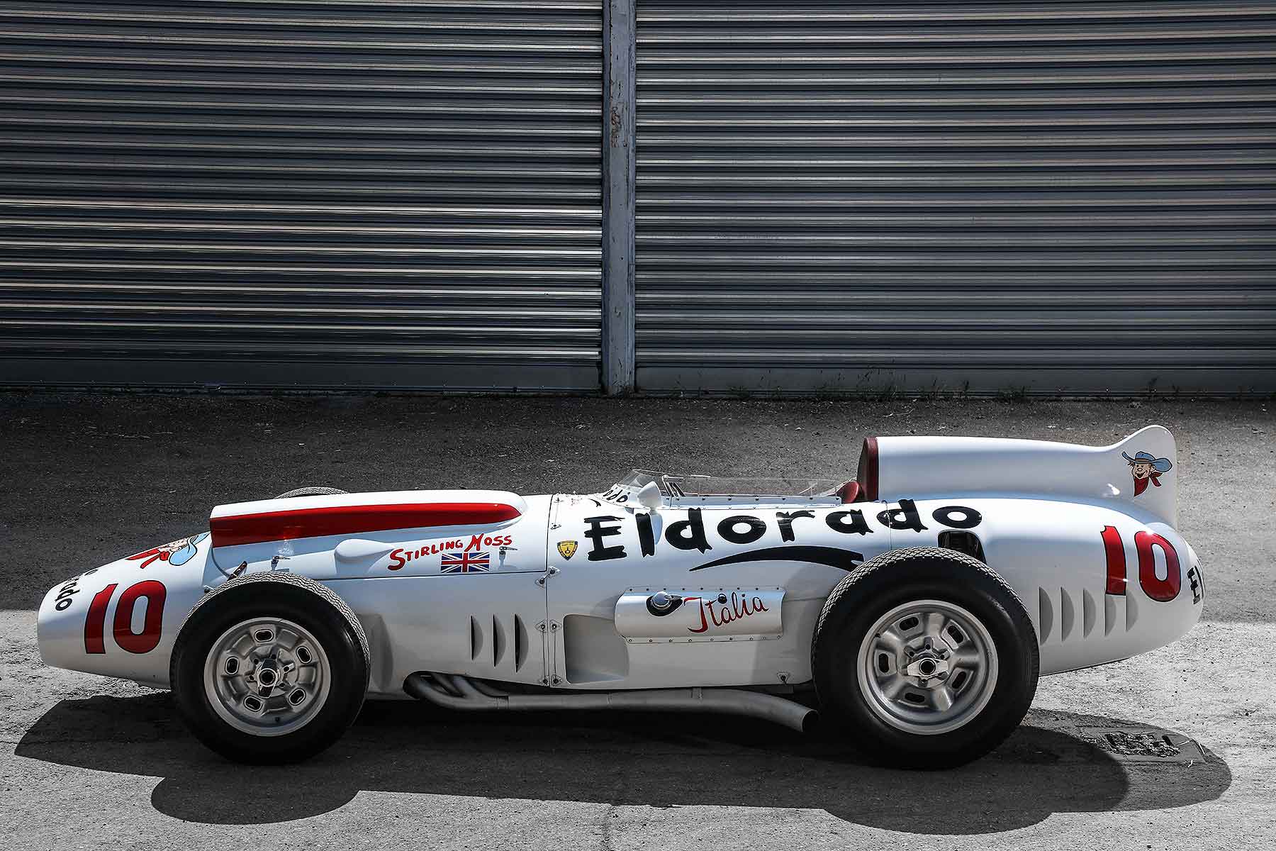 Other text included ‘Italia’, to denote the nationality of the sponsor and the manufacturer, along with the name of the driver: none other than Stirling Moss.