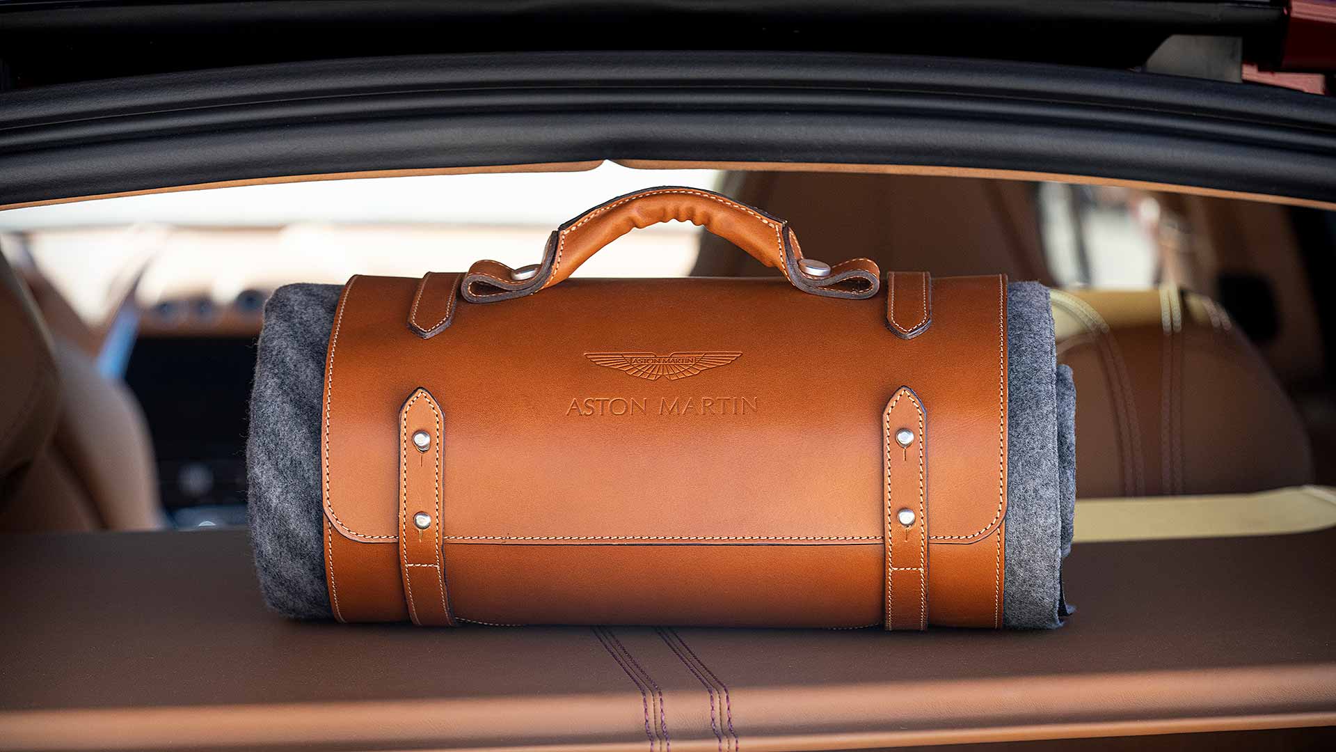An Event Pack includes a hamper, picnic blanket and event seating, similar to the ‘tailgate seat’ found on the Rolls-Royce Cullinan. Because Aston knows what British picnics can be like, this pack also includes extra umbrella storage.