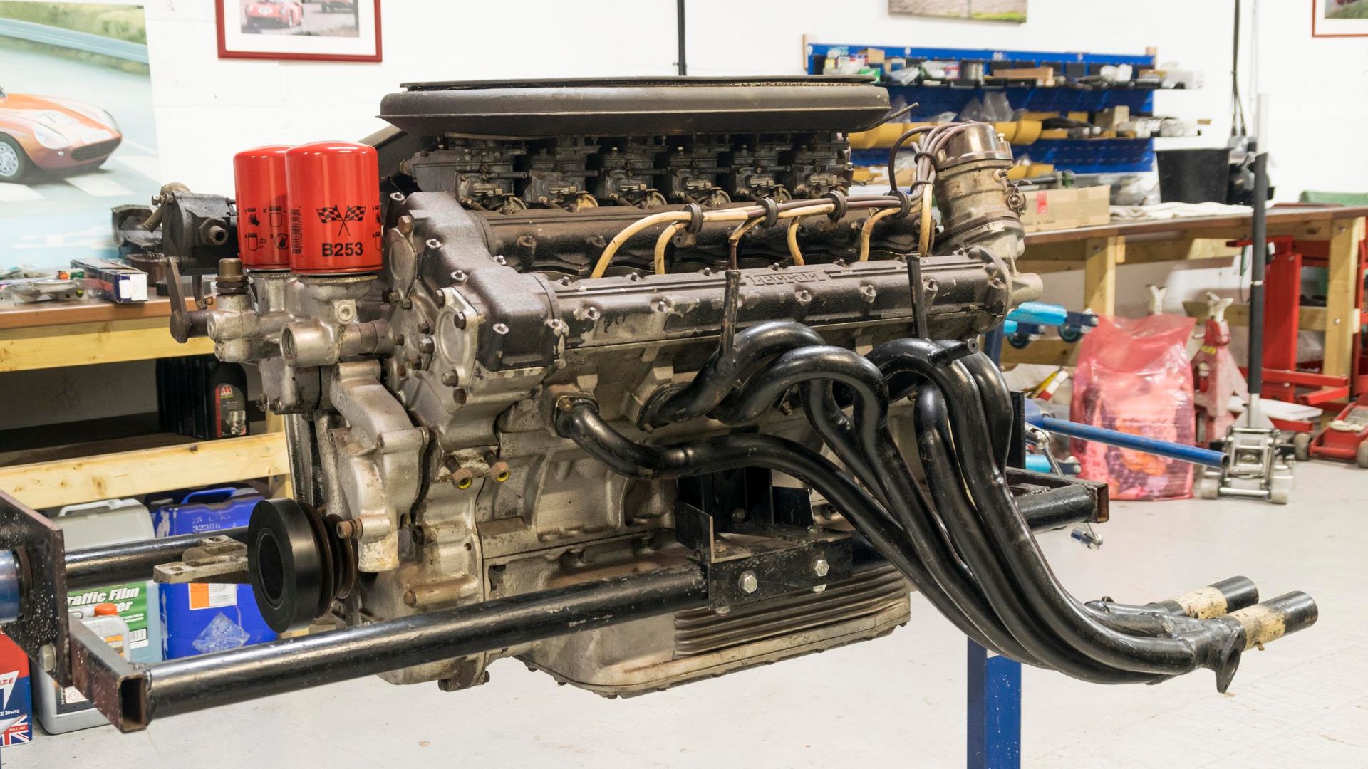 It’s offered now as a partially finished project, with the original V12 engine and boxes of parts ready to go. Some of the parts to be supplied with the car are brand new.