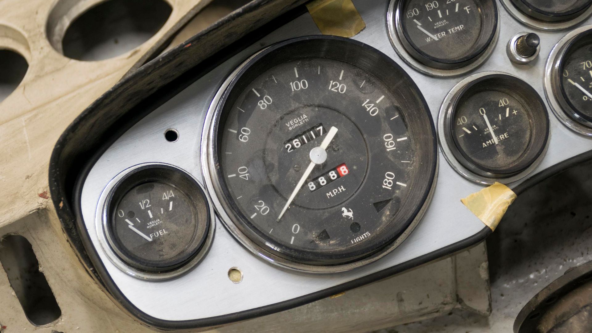 The engine will need work, but its internals are apparently in good condition. Original, too, is the instrument cluster, with a believed-to-be-accurate 26,117 miles on the odometer.