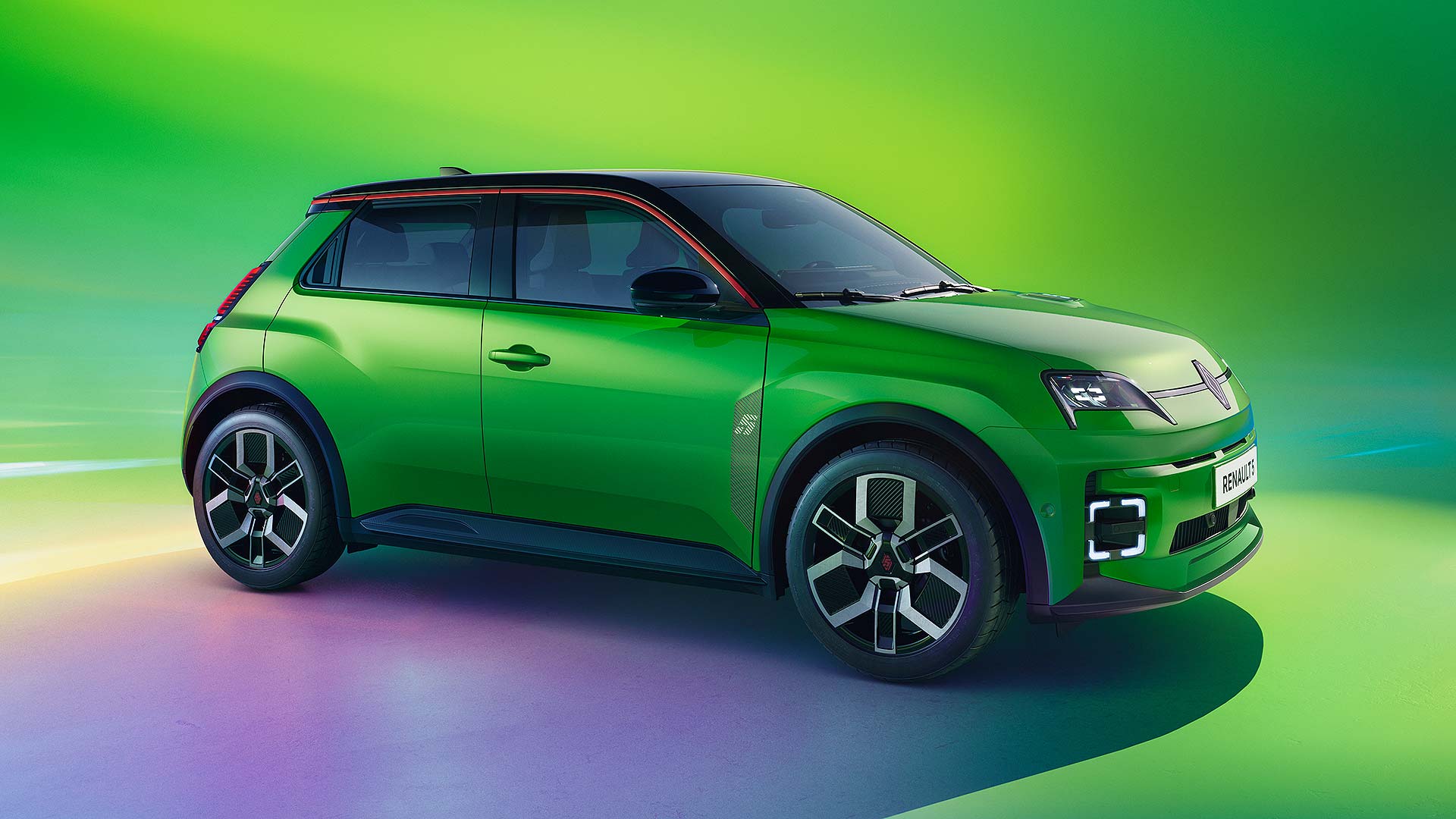 Notable new green electric cars include the Renault 5 E-Tech (pictured above) – indeed, green is the ‘free’ colour for the R5, with other hues being optional extras.