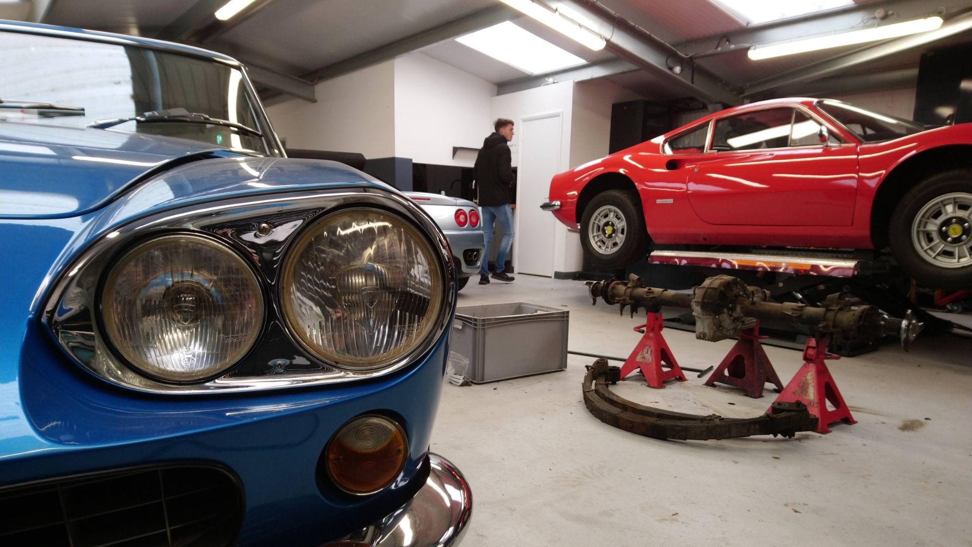 Bell Classics is something of a labyrinth. You have a look around one garage, only to find another across the way and down a hill, chock full of tantalising machinery. A five-ramp room has a selection of V8 Berlinettas as well as a lone 550 up in the air.
