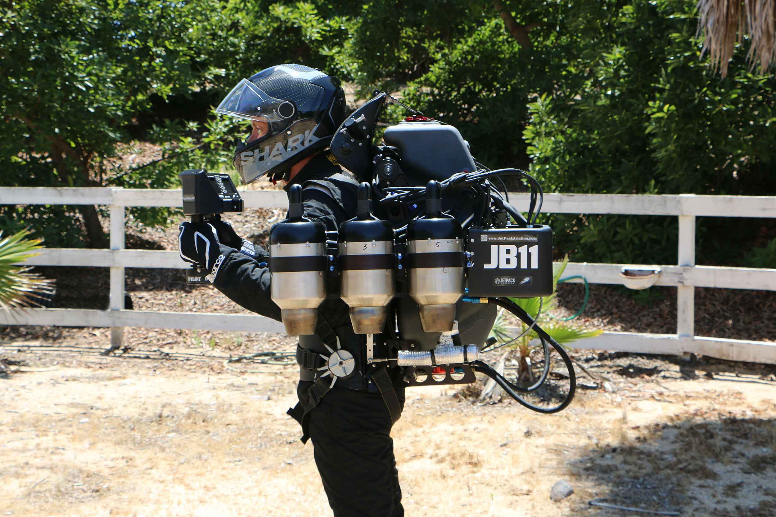 The JetPack has six turbojet engines: four of them are used to fly it, with two as backups in case of an emergency. It’s powered by kerosene jet fuel – or regular car diesel.