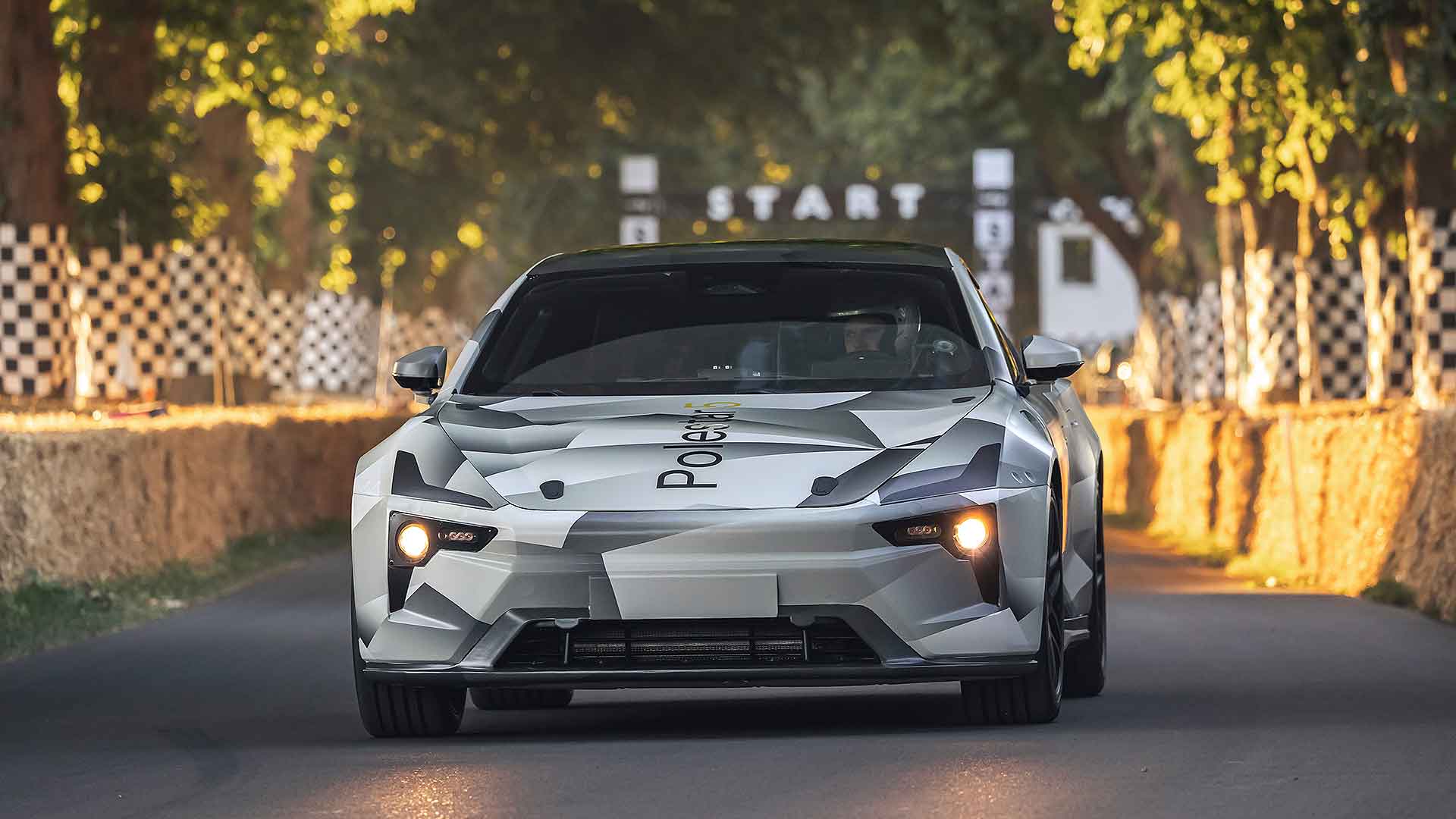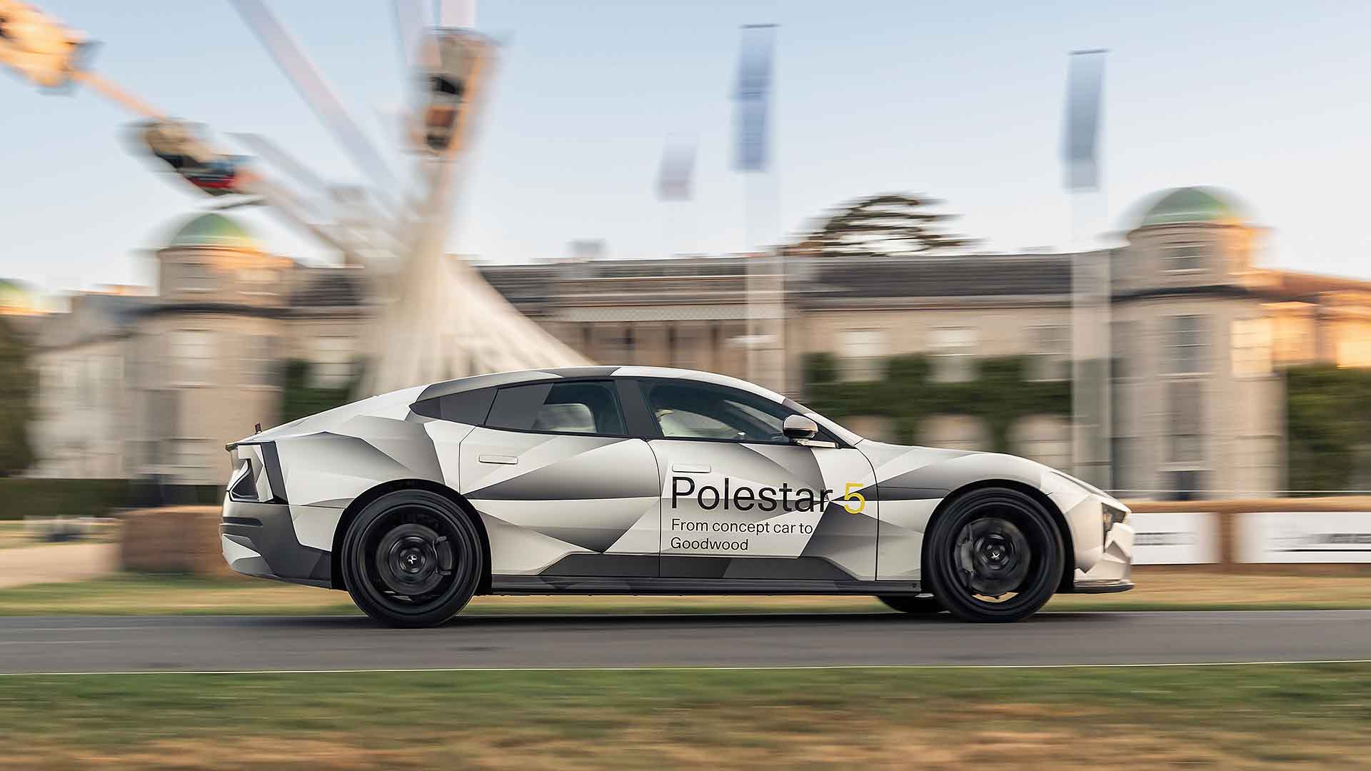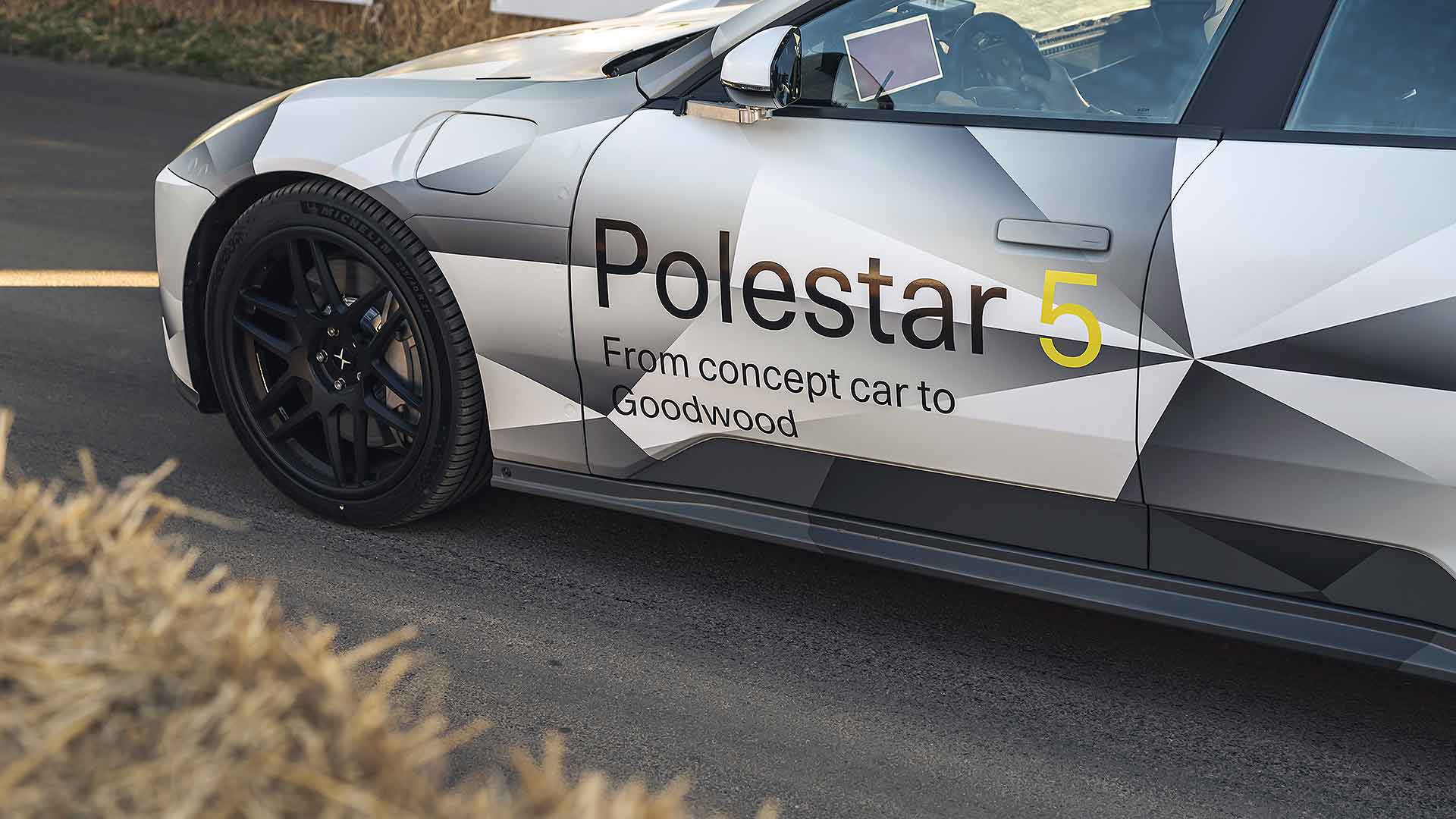 Seen in action for the first time in public this weekend at the Goodwood Festival of Speed, the Polestar 5 is being run up the Goodwood hill twice daily in the First Glance group.