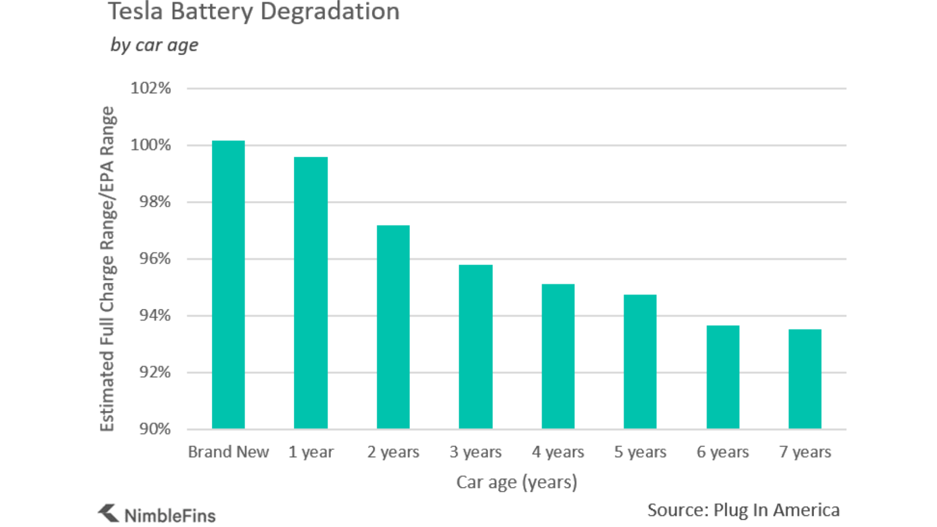 Just as an internal combustion car loses horsepower over time, electric cars have less battery capacity as they age. Think of it as your car’s fuel tank getting marginally smaller every year.