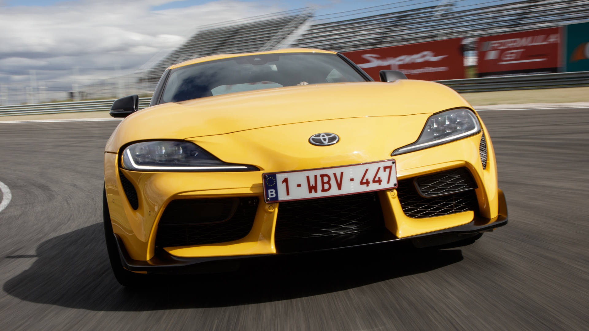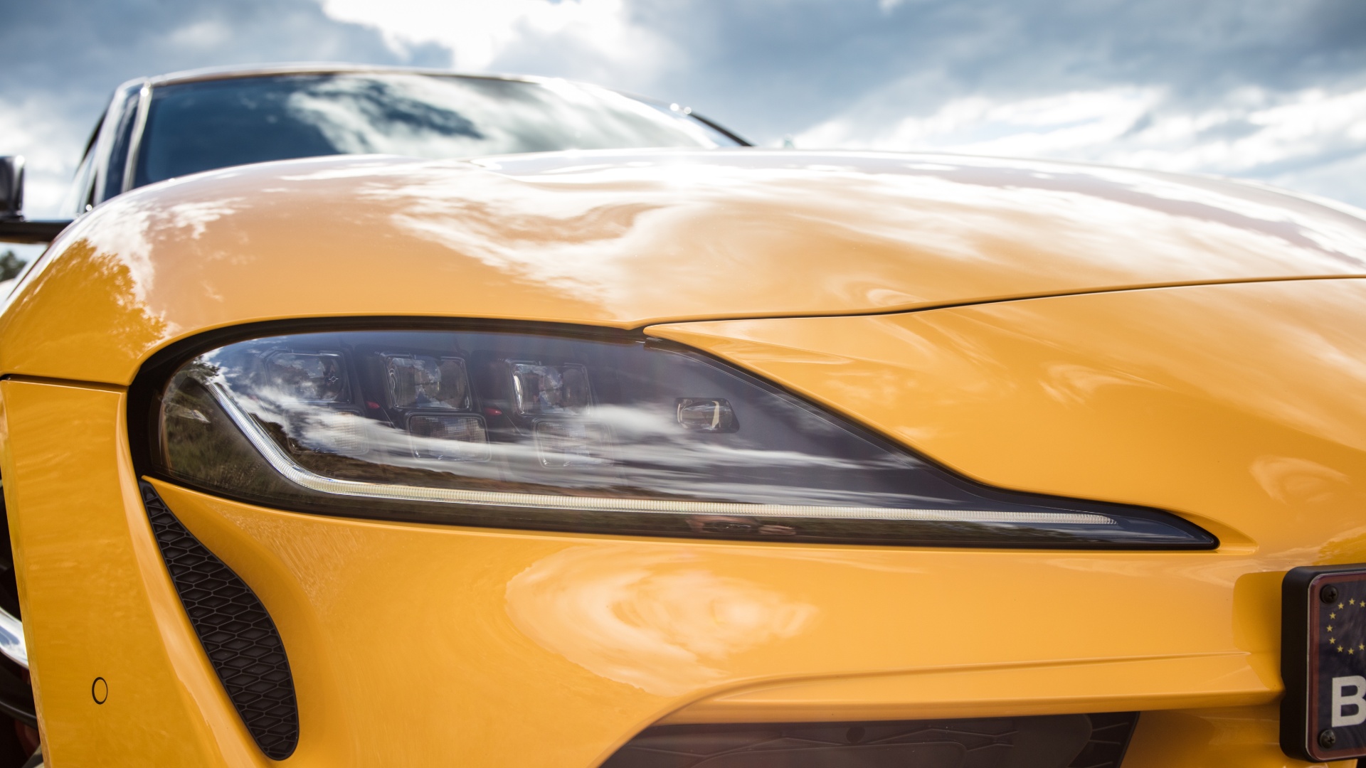 Basking in the fluorescent glow of a subterranean car park, the new Supra awaits. Squat and willfully aggressive, its voluptuous curves are punctuated by slash-cut strakes. It bristles with kinetic energy even sitting still.