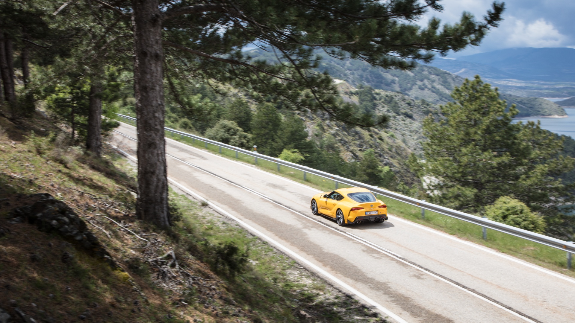 Blasting along capillary lanes, the Supra has the feel of ‘flow’ common to all great driver’s cars. It hugs the topography tightly over crests and compressions, turning in sharply and seeming to pivot around its own axis. The steering doesn’t fizz with abundant feedback like the GT86, but grip levels are hugely higher.