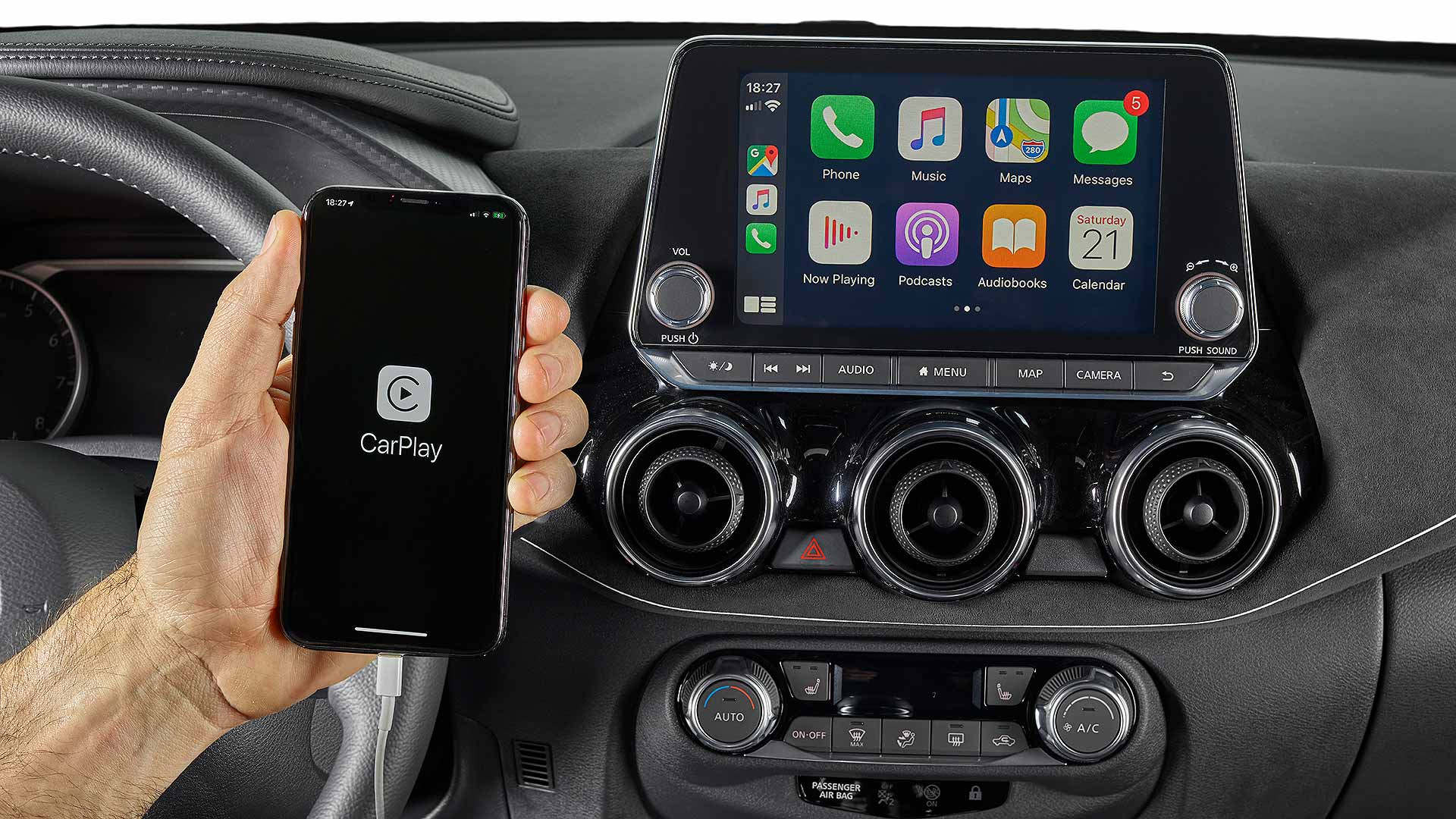 All but base-spec Visia have a crisp 8.0-inch touchscreen which looks less stuck on than some. It has Apple CarPlay, Android Auto, and also communicates with a Nissan smartphone app. And with a Google Home device, so you can speak commands to it, or the kids can ask it to flash the lights and sound the horn, to their endless amusement.