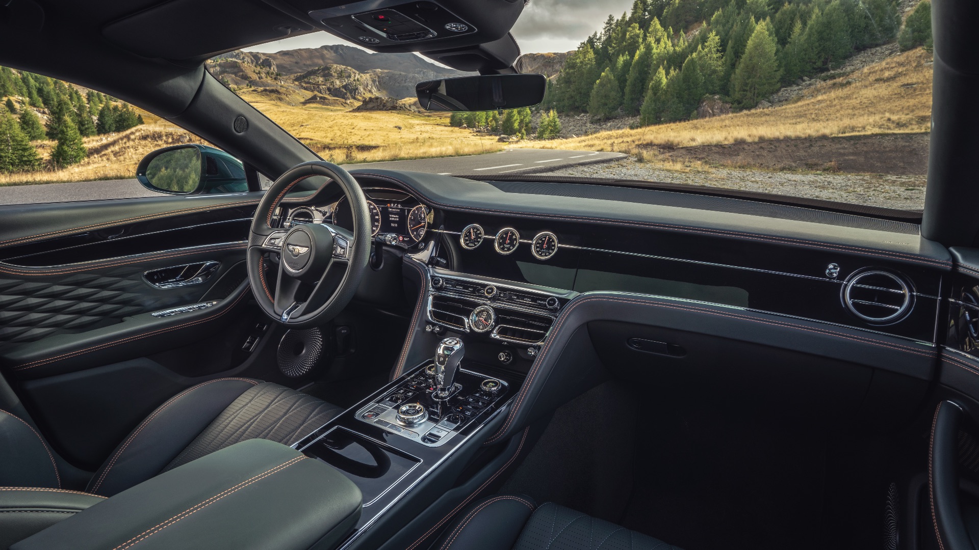 There’s some very clever chassis tech, too. The available 664lb ft of torque is constantly variable between all four wheels, while Dynamic Ride decouples the anti-roll bars for softness in a straight line, then primes them for active roll-resistance when cornering. As the road climbs into the foothills of the Alps, the result is agility belies the Bentley’s bulk. Indeed, it feels little different to the Continental GT coupé, with direct steering, confidence-inspiring brakes and a pleasingly rear-biased feel if you switch to Sport mode.