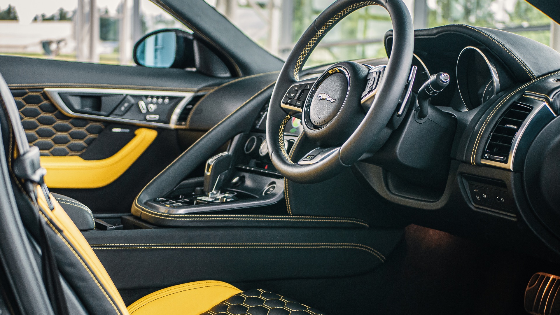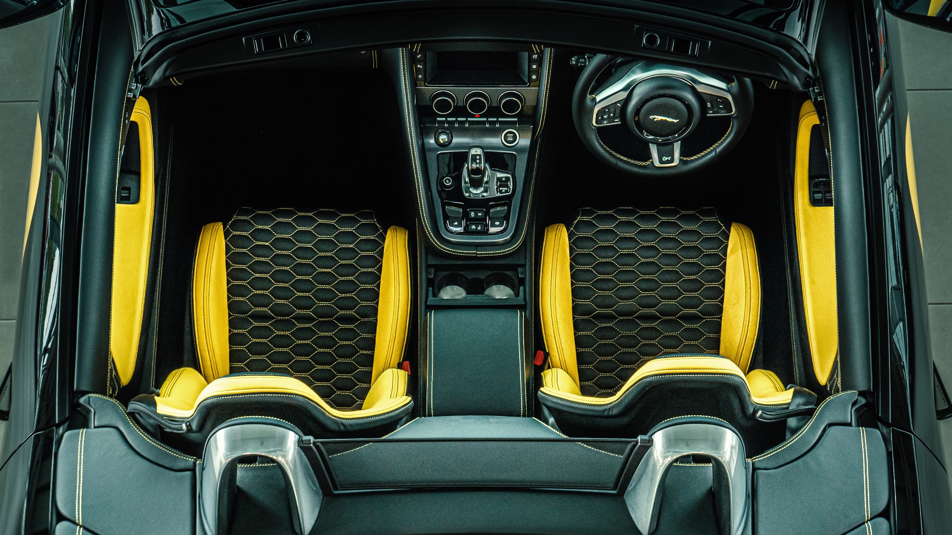 There’s yet more yellow inside – also optional, thankfully – with seats and doors retrimmed in plush Bridge of Weir leather. Jaguar’s dated infotainment system is the only black mark, but that’s swiftly forgotten when you press the pulsating start button. The 5.0-litre V8 hails from the F-Type R, delivering its devilish 666bhp via an uprated supercharger, new intercooler and carbon-tipped exhaust. Standstill to 62mph takes a scorching 3.2 seconds and Vmax is 205mph. A Honda Accord doesn’t come close.