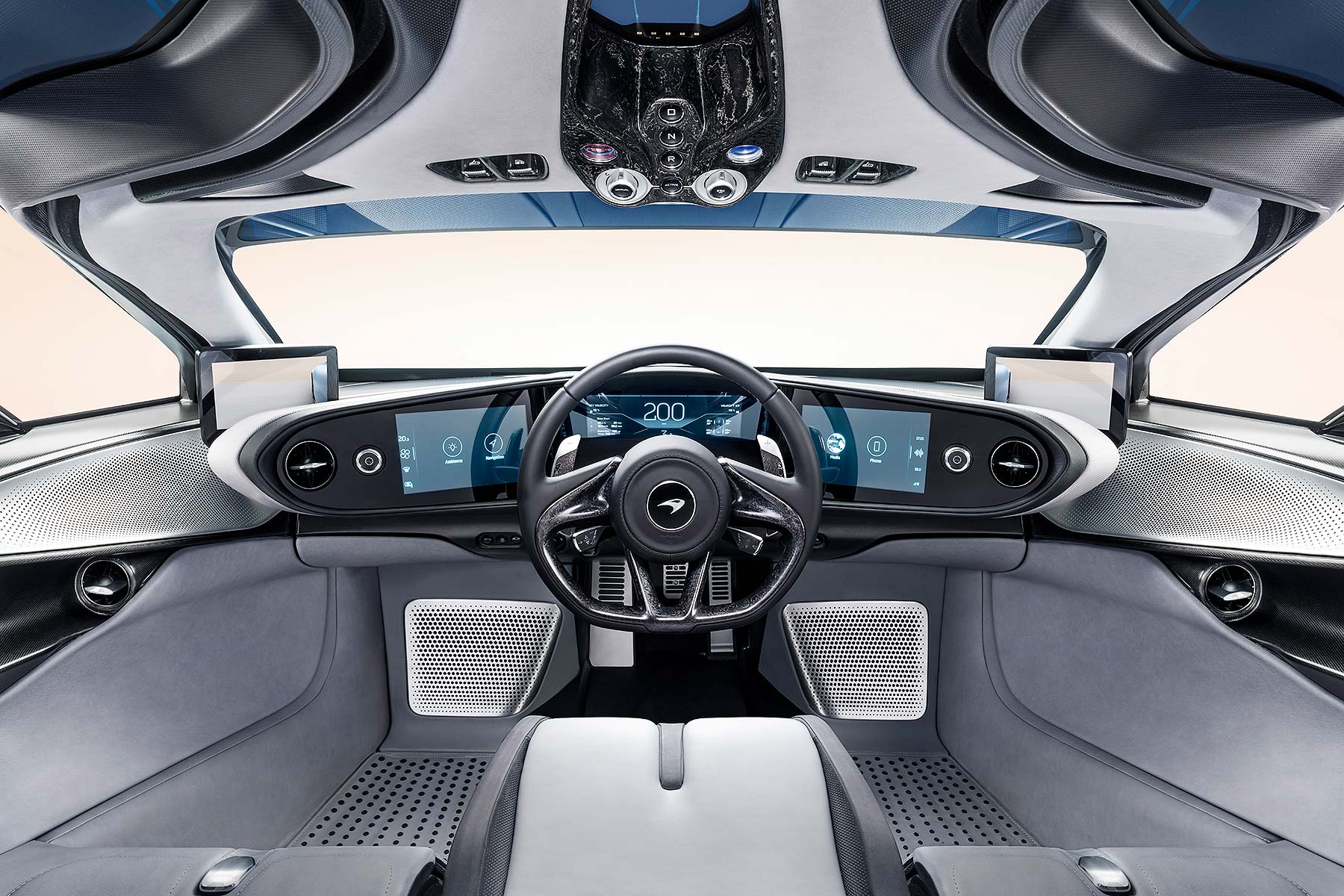 All the carbon fibre panels are left with a polished clear coat, allowing the natural weave to be seen. The billet aluminium pieces, including the exquisitely detailed door handles, have a bronze-nickel coating to make them stand out.
