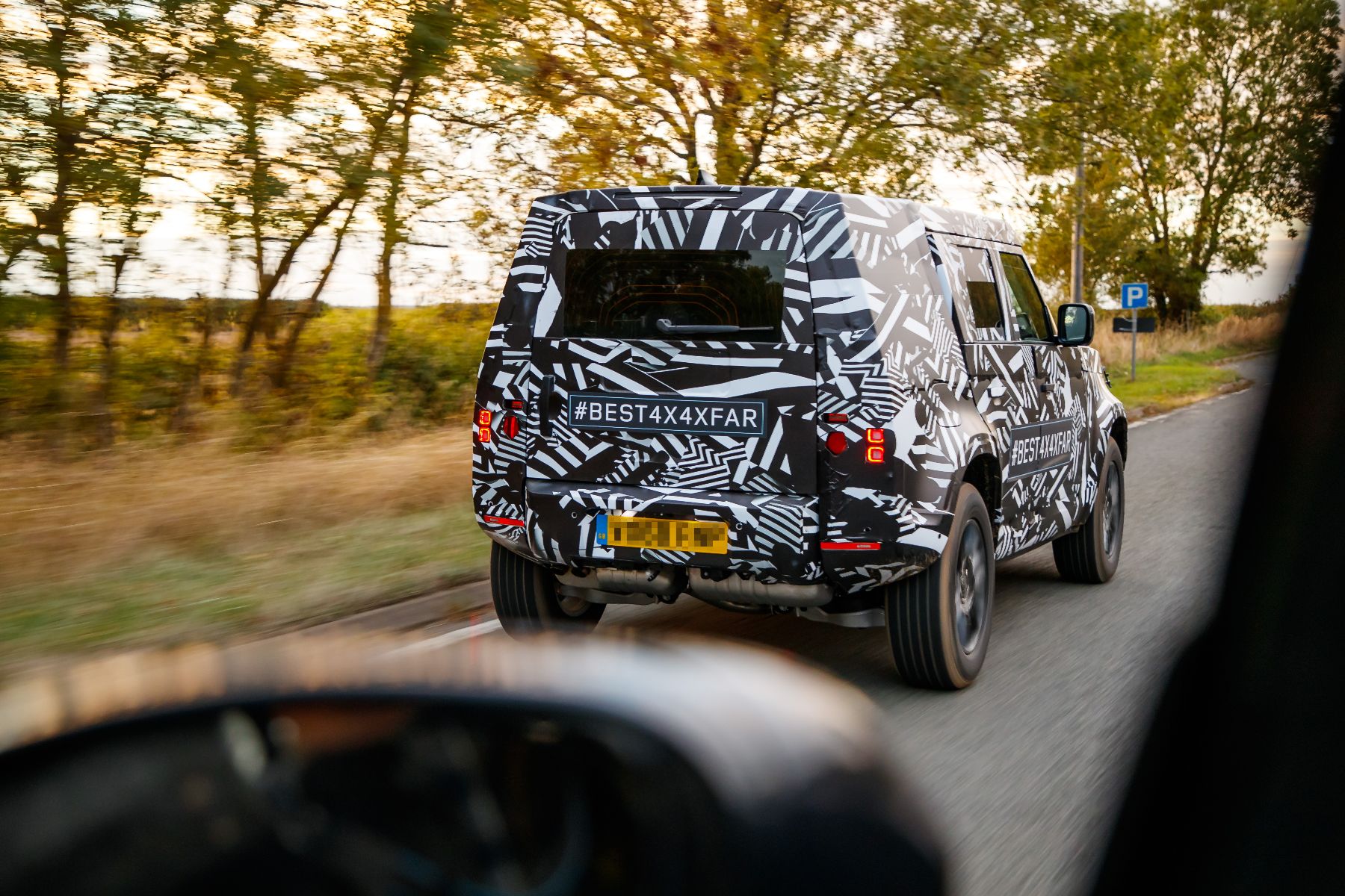 In terms of aesthetics, it’s as you’d expect. We don’t need to whip the camo off to deduce that the new car maintains the boxy silhouette of the originals, with some 21st-century LR styling tropes and modern garnish for good measure. Short overhangs, blistered wheelarches and thick tyre sidewalls are already good signs to us.